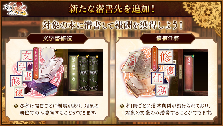 専用の有碍書に潜書し、敵を討伐するイベントとなります。