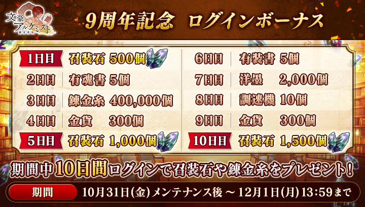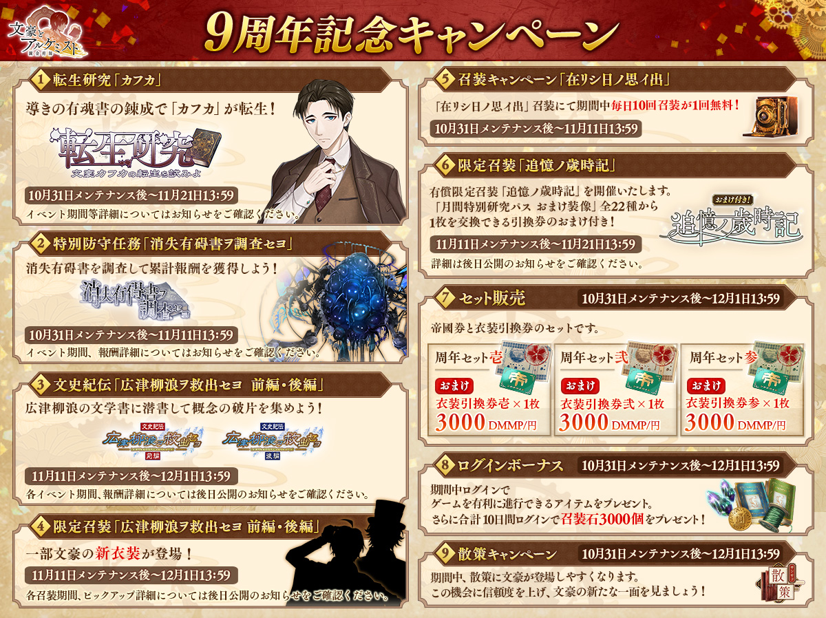 文アルでは期間中、9周年を記念したキャンペーンを開催いたします。