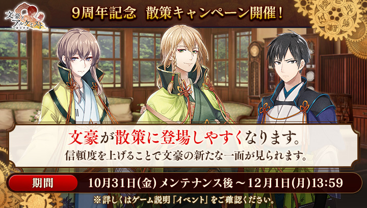 この機会に信頼度を上げ、文豪の新たな一面を見ましょう!